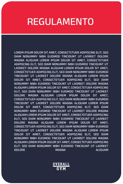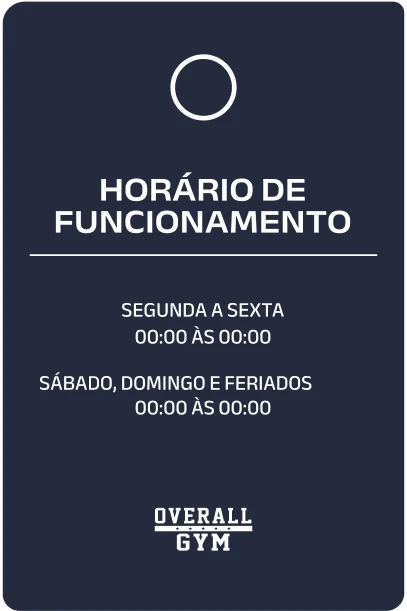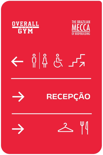 Na OVERALL GYM, os pictogramas são utilizados para identificar espaços funcionais como vestiários, banheiros, áreas de treino, salas de aula, recepção e emergência, além de reforçar normas de segurança e conduta, como “proibido fumar”, “uso obrigatório de toalha” ou “câmeras em funcionamento”.