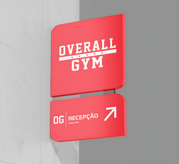 Além de funcionalidade, os pictogramas da OVERALL GYM reforçam o posicionamento da marca, ao transmitir modernidade, organização e cuidado com o ambiente e com seus frequentadores.